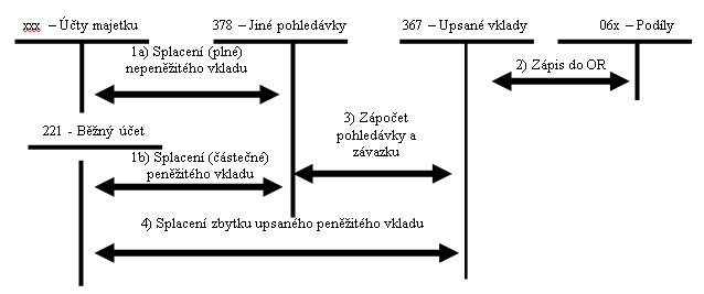 1. splacení (části) vkladu (např. předání majetku správci vkladu) účtuje vkladatel: